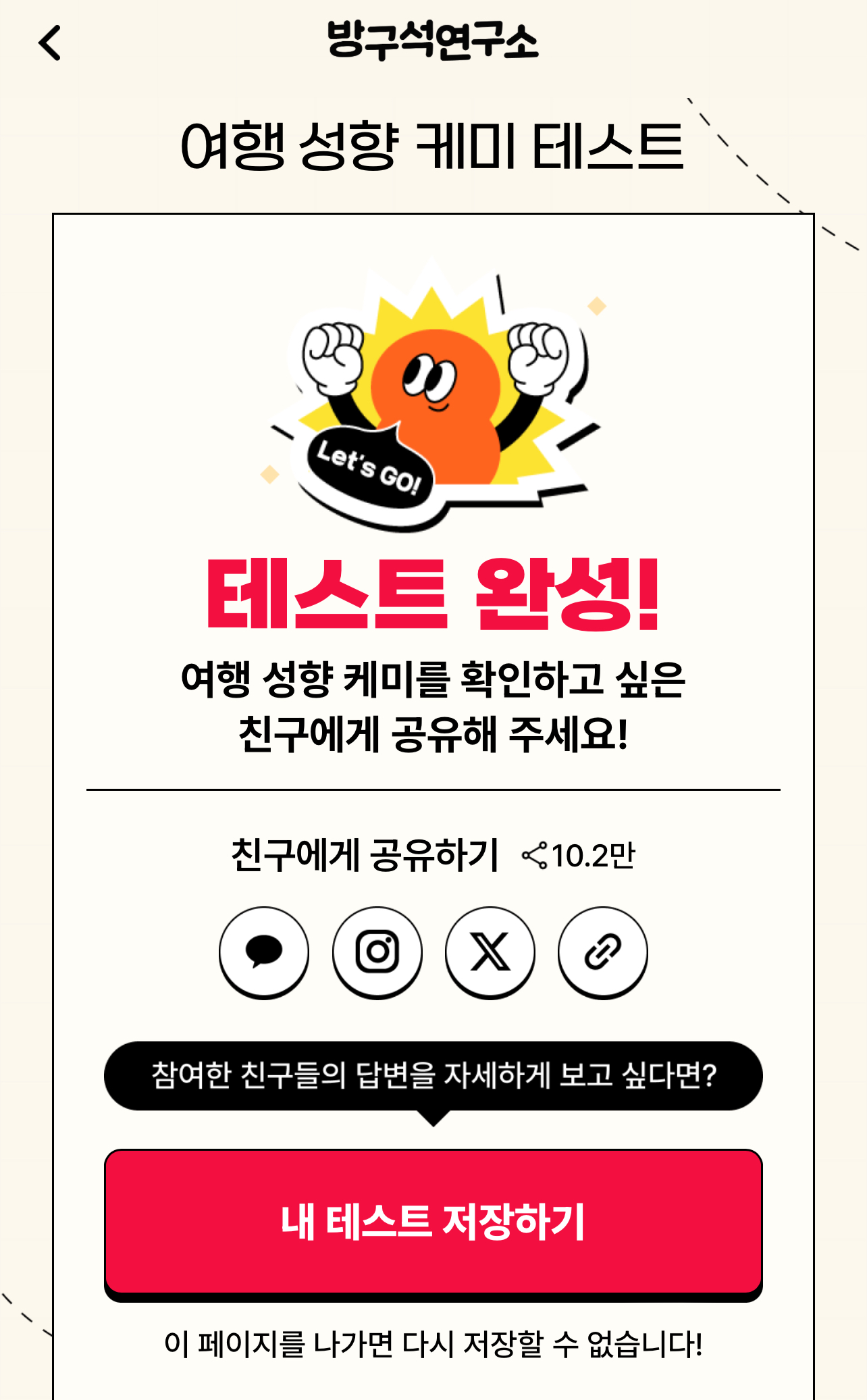 이후 나만의 ‘여행 성향 케미 테스트’가 완성됩니다.