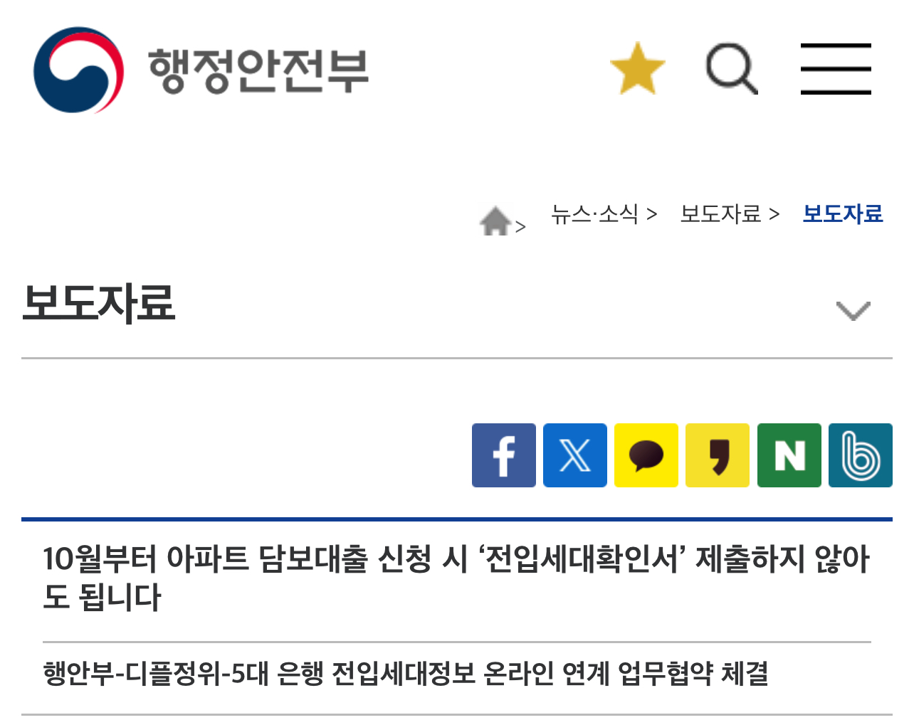 이러한 불편을 해소하기 위해 지난 3월부터 행정안전부와 디지털플랫폼정부위원회는 5대 은행과 함께 주택담보대출 시 전입세대정보 온라인 연계방안을 논의해 왔습니다.