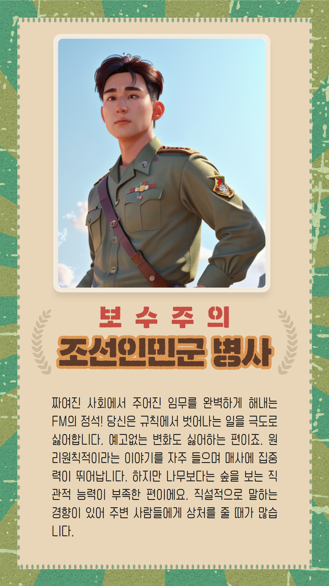 보수주의 조선인민군 병사가 나왔습니다.