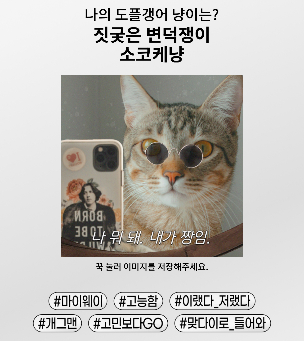 방구석연구소라는 사이트에서 나와 닮은 고양이는 무엇인지 찾아보는 ‘냥플갱어 테스트’를 소개드릴까 합니다.