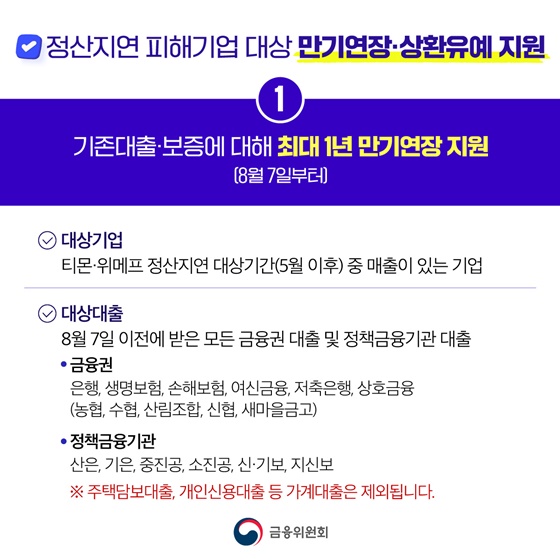 ① 기존대출·보증에 대해 최대 1년 만기연장 지원(2024년 8월 7일부터)