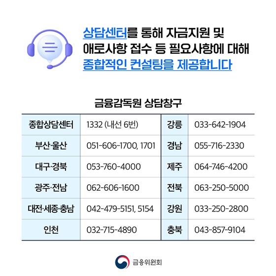 상담센터를 통해 자금지원 및 애로사항 접수 등 필요사항에 대해 종합적인 컨설팅을 제공한다고도 합니다.