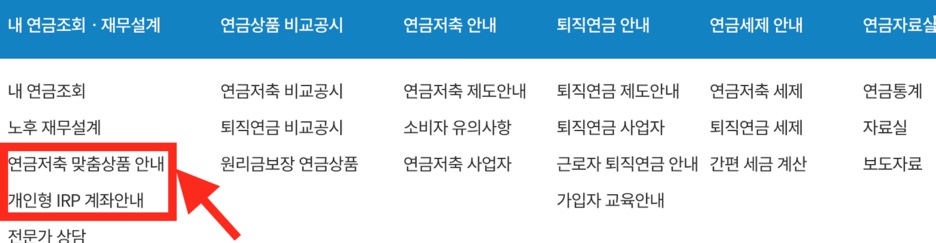 [연금상품 비교공시] 라는 안내도 있습니다.