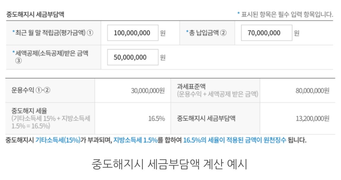 중도해지 및 연금수령시 세금 부담액을 계산할 수 있는