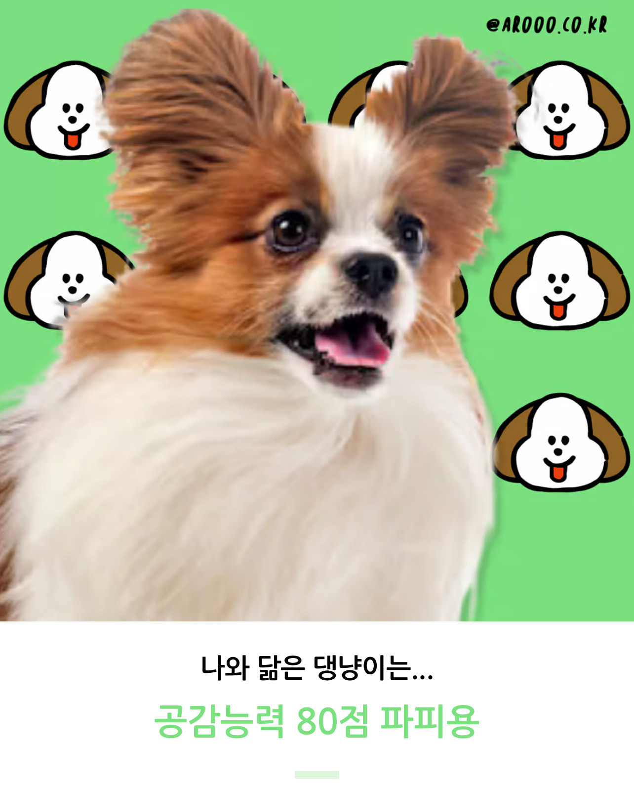 ✓ 당신은 몽글몽글한 감성으로 똘똘 뭉진 강아지, 파피용이네요.