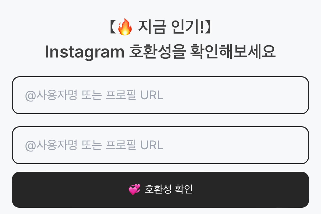 이뿐만 아니라 인스타 계정 두 개를 비교해서 상대와 나의 조합을 알 수도 있습니다.