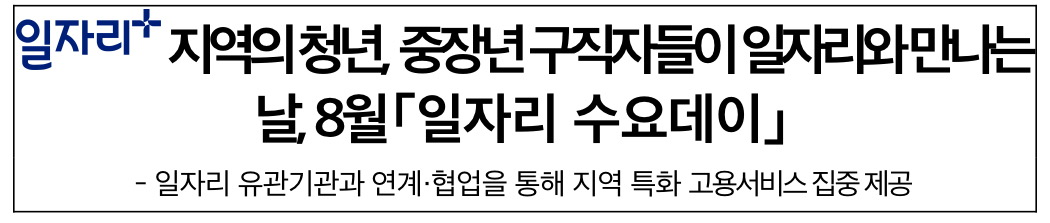2024년 8월에는 22일부터 지역의 청년, 중장년들이 적합 기업을 탐색하고 준비할 수 있도록 지역 일자리 유관기관과 협업을 중심으로 ‘일자리 수요데이’를 운영*한다고 합니다.