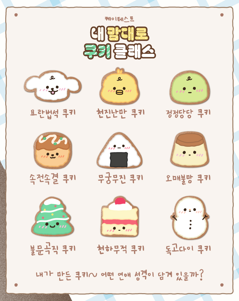 내가 만든 쿠키 어떤 연애 성격이 담겨 있을지 알아보는 케이테스트에 나온 ‘내 맘대로 쿠키 클래스’를 소개드리겠습니다.