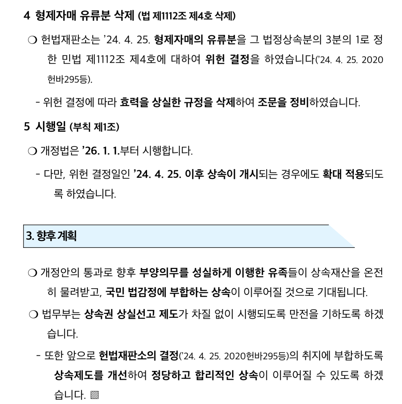 헌법재판소가 직계 존·비속 유류분 조항에 대해 헌법불합치 결정을 내린 지난 4월 25일 이후 상속이 개시된 경우에도 소급 적용될 수 있도록 했습니다.