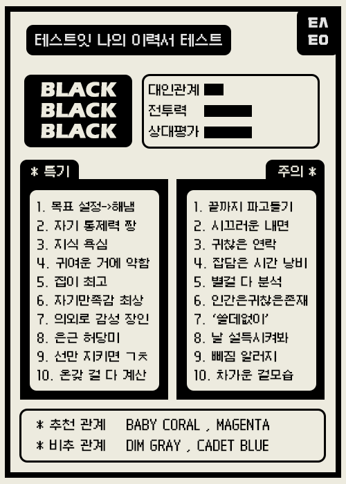 테스트잇이라는 사이트에서 나온 ‘나의 이력서 테스트’를 소개드리겠습니다.