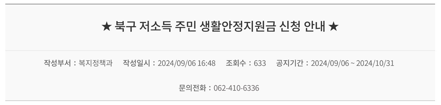 기타 자세한 사항은 북구청 복지정책과 또는 동 행정복지센터에 문의하면 됩니다.