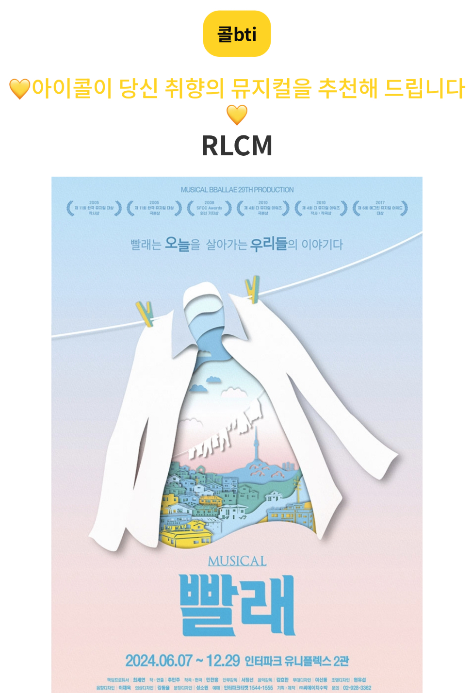 당신에게 딱 맞는 뮤지컬은 무엇인지 추천해주는 ‘콜bti 테스트’를 소개드리겠습니다.