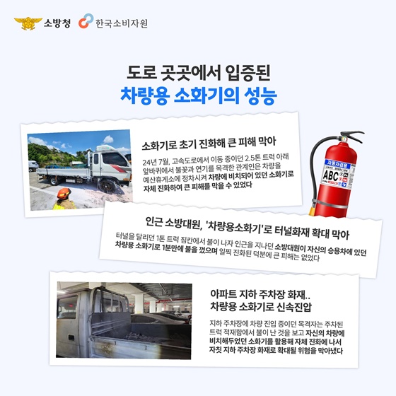 차량용 소화기를 활용한 초기 화재 진압은 더 큰 피해를 막는 첫 번째 발걸음이라고 합니다.
