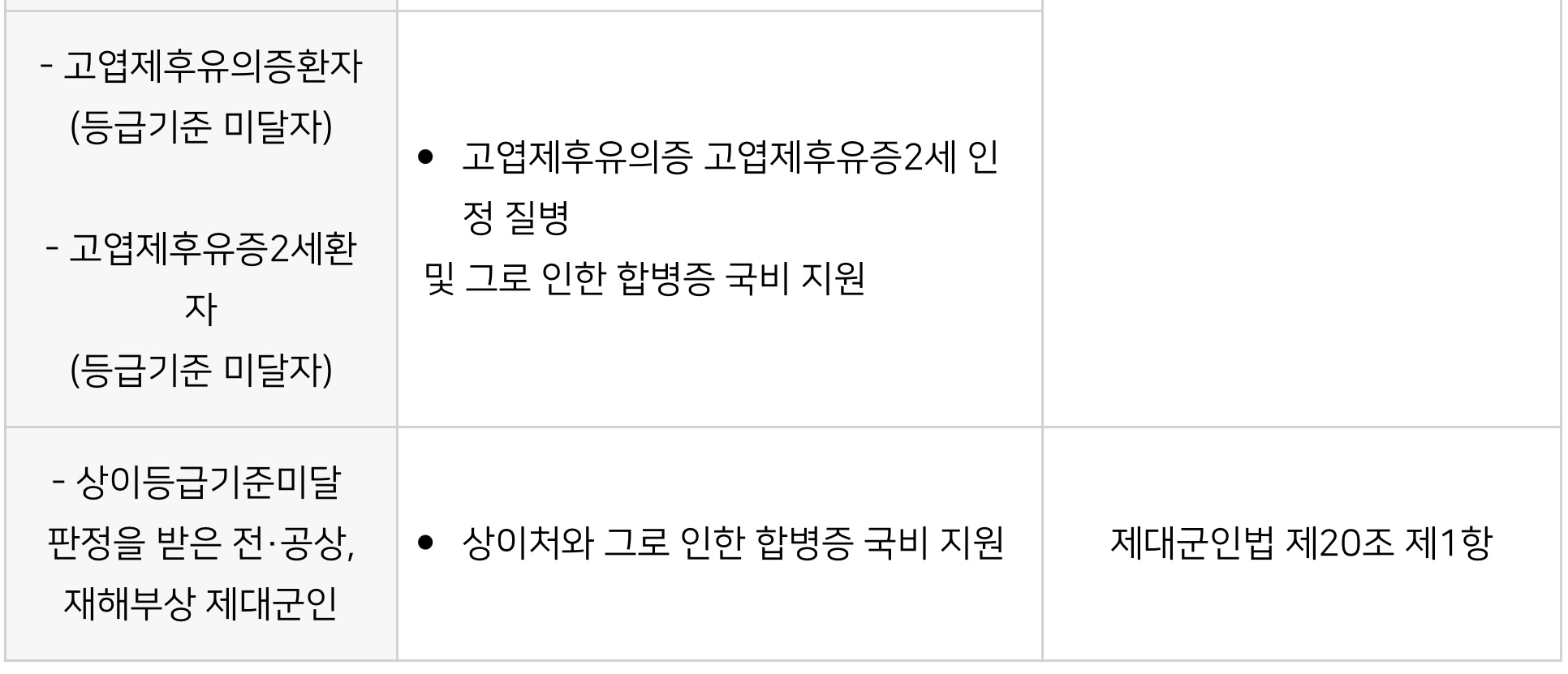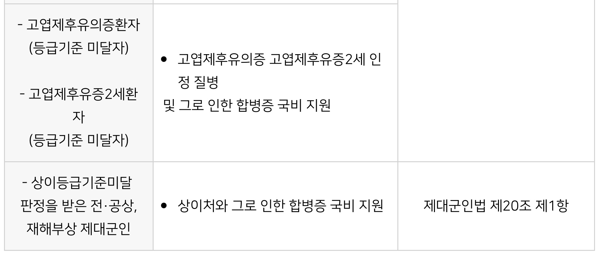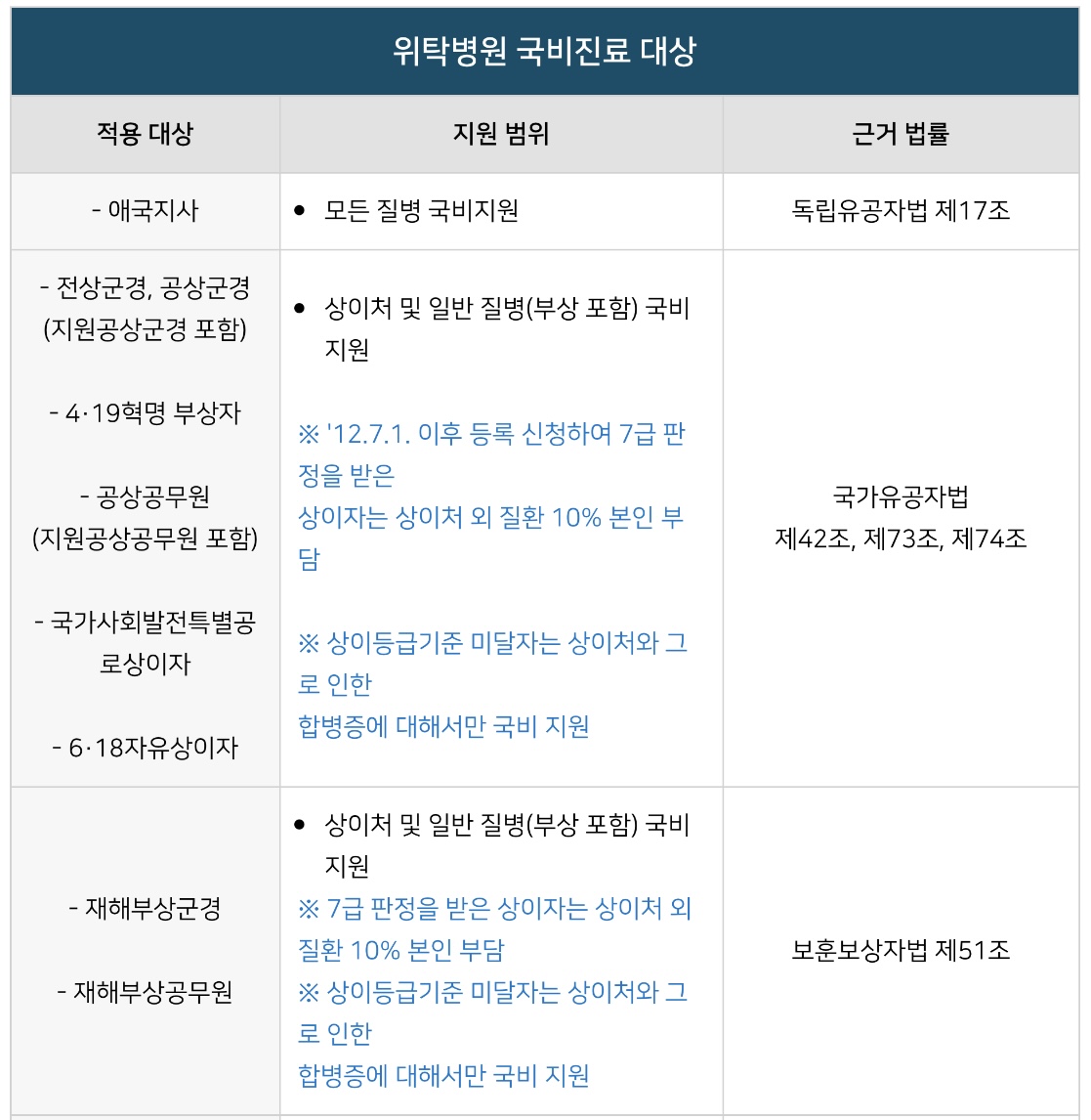 이에 병원별•보훈대상자별 의료 지원 혜택에 대해서 안내드리겠습니다.