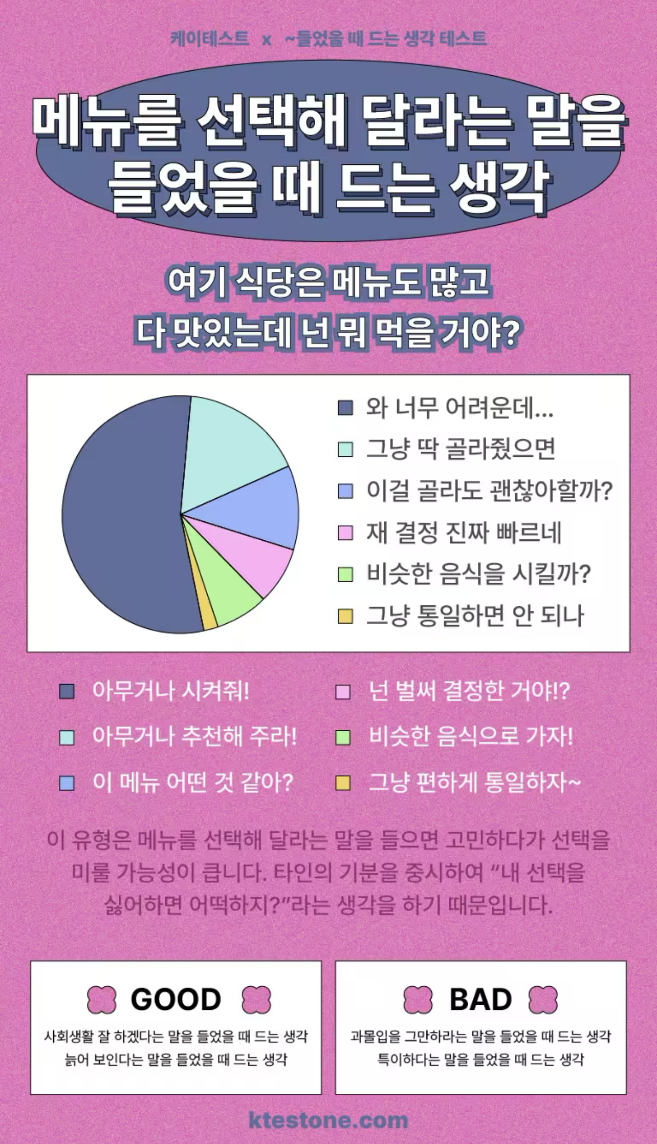 ~들었을 때 드는 생각은 무엇일지 알아보는 케이테스트에서 나온 ‘~들었을 때 드는 생각 테스트’를 소개드리겠습니다.