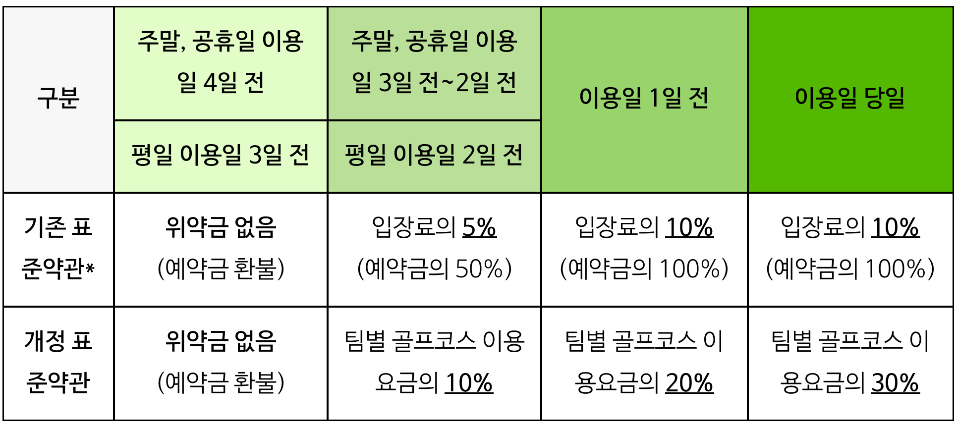 위약금의 기준이 되는 요금은 ‘팀별 골프코스 이용요금’