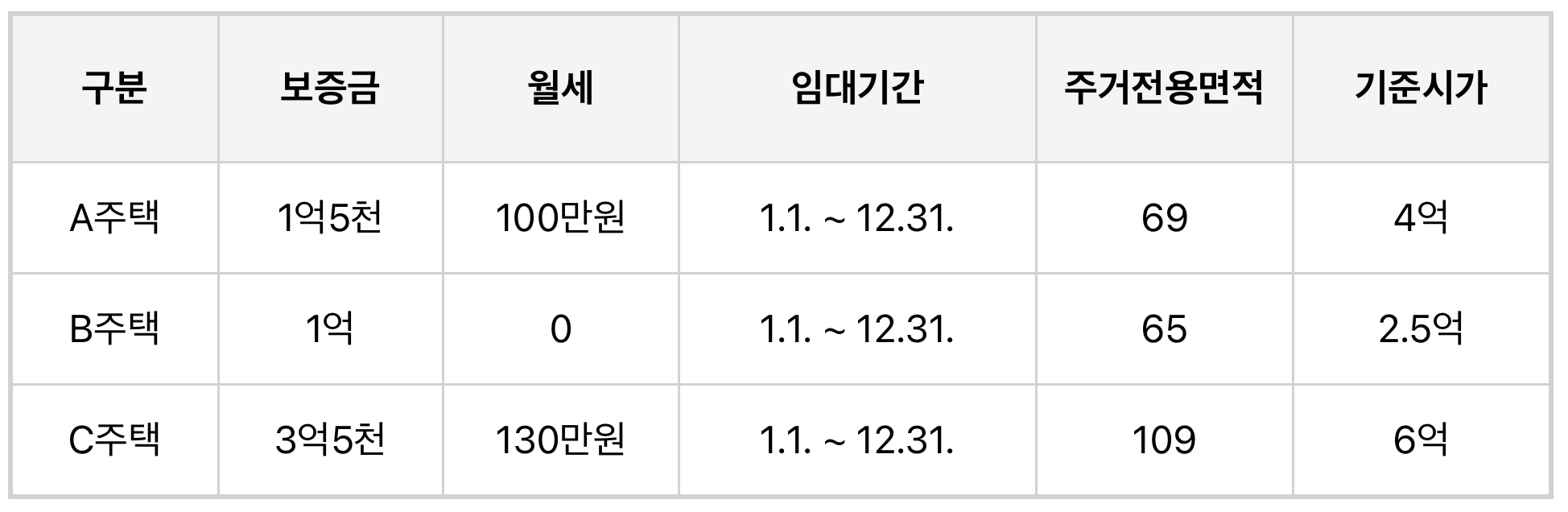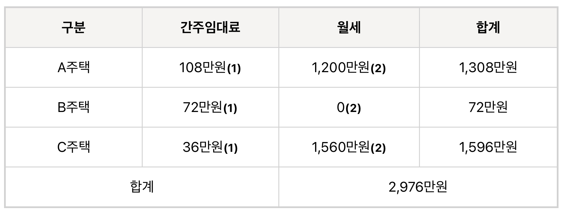 아래에서는 실생활에서 접하기 쉬운 대상들의 사례로 간주 임대료를 계산해서 안내드리겠습니다.