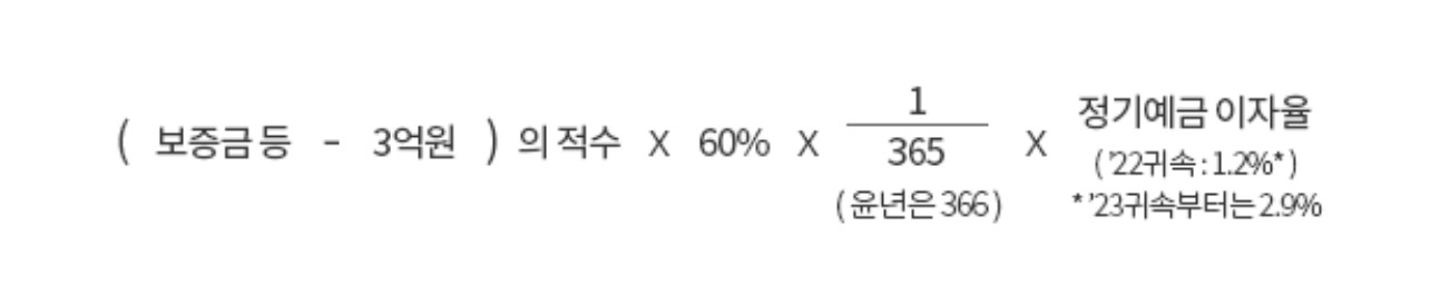 ▶(보증금 등- 3억원(1))의 적수 x 60% ÷ 365 x 1.2%