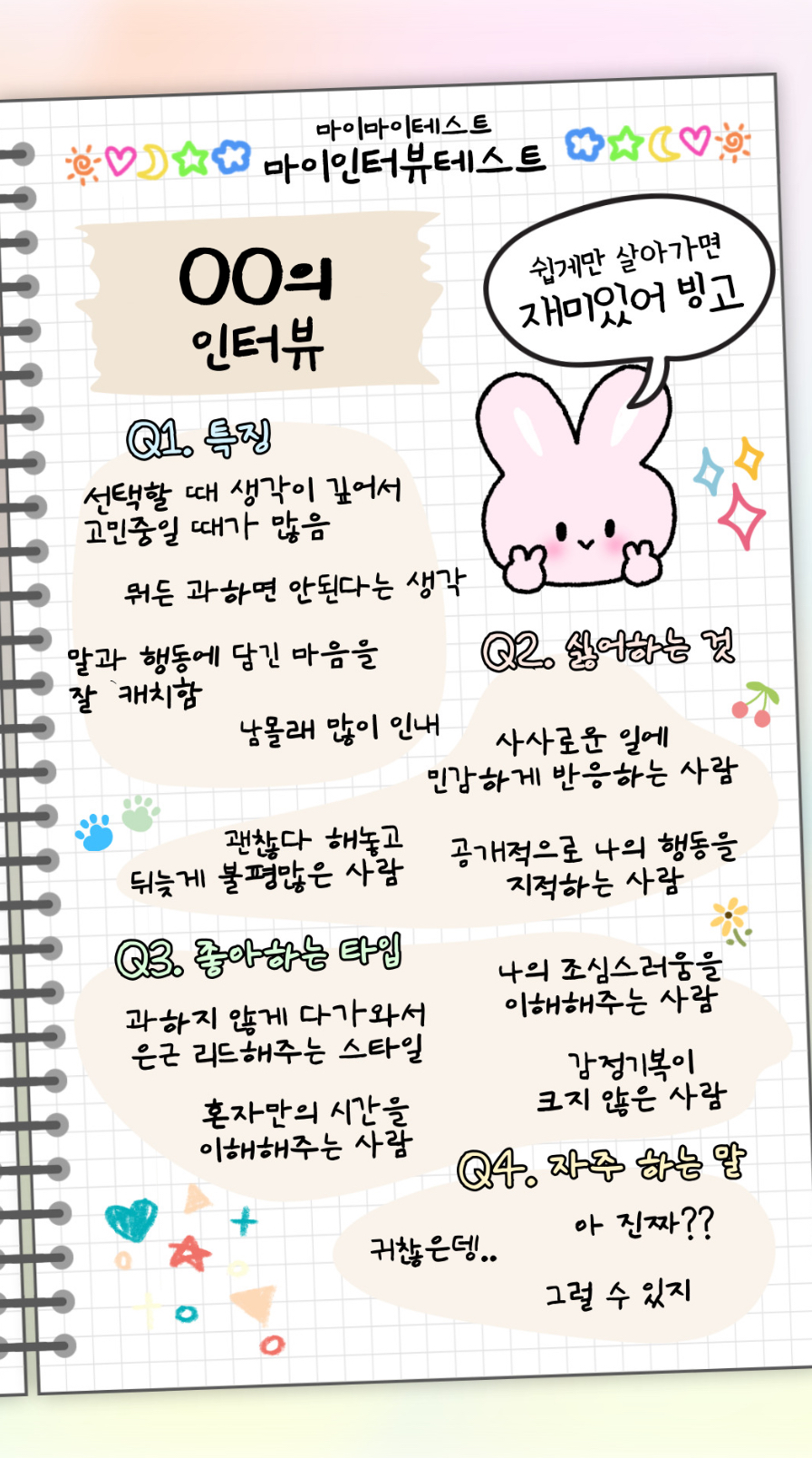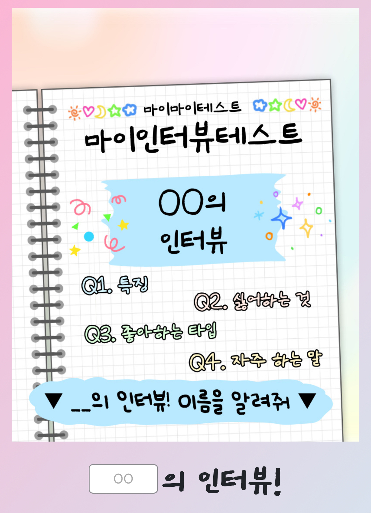 시작에 앞서 OO의 인터뷰! 빈칸에 본인의 이름이나 닉네임을 입력해주세요