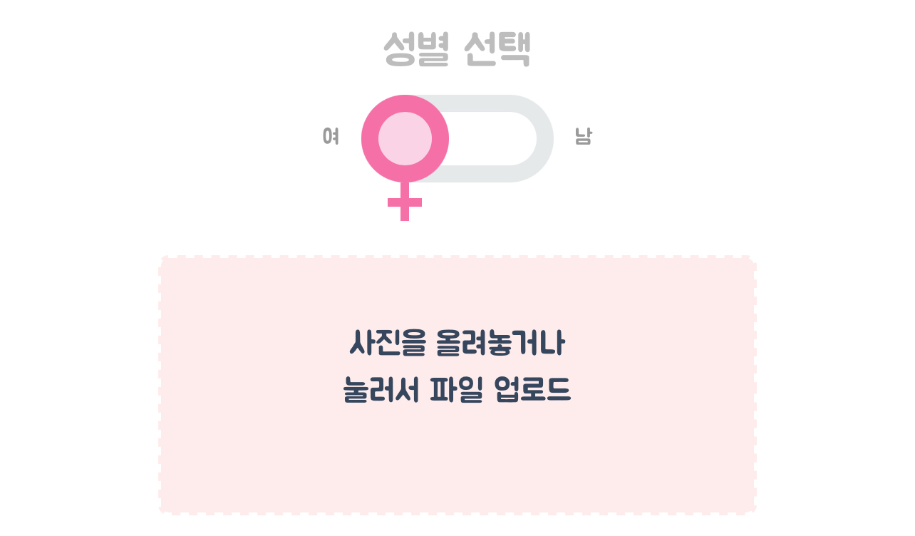 시작에 앞서 성별 여자, 남자 중에서 골라주시길 바랍니다.