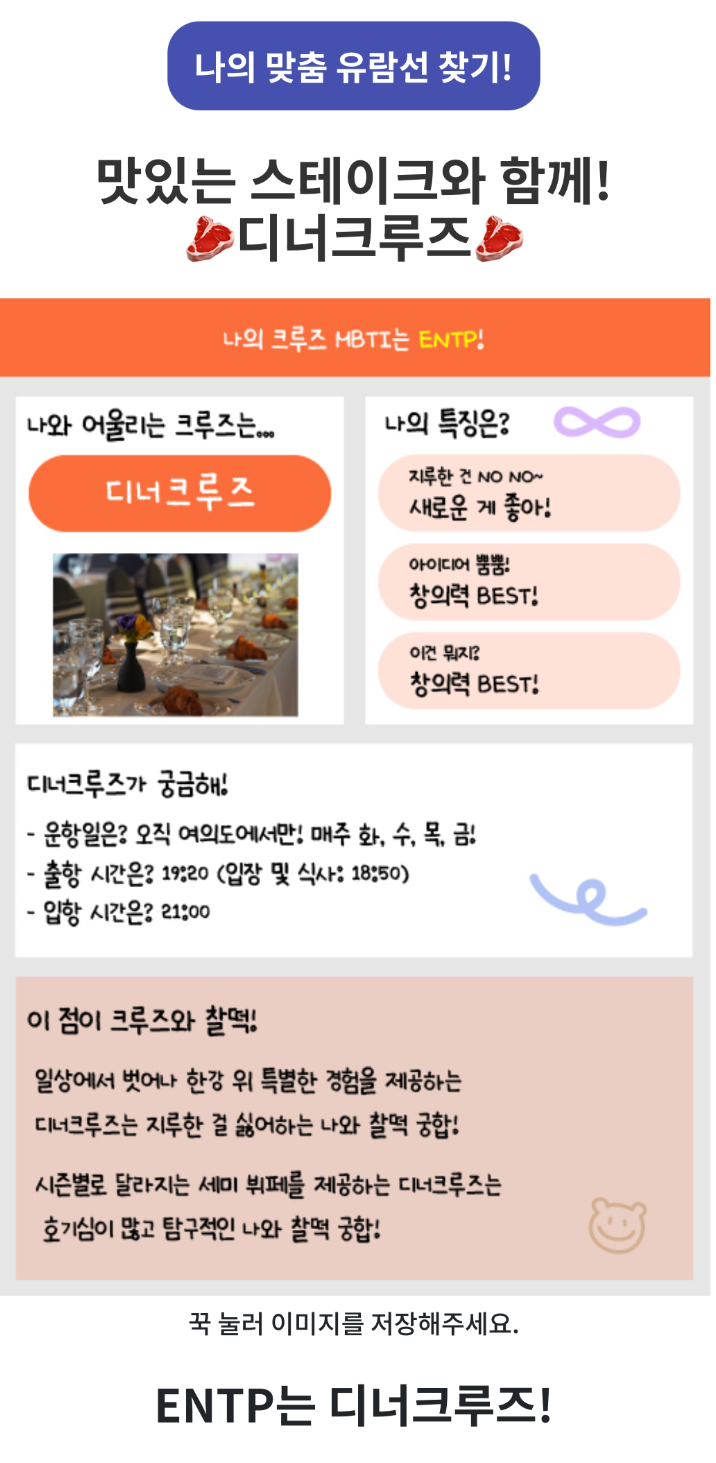 나의 맞춤 유람선 찾기 테스트 링크 바로가기