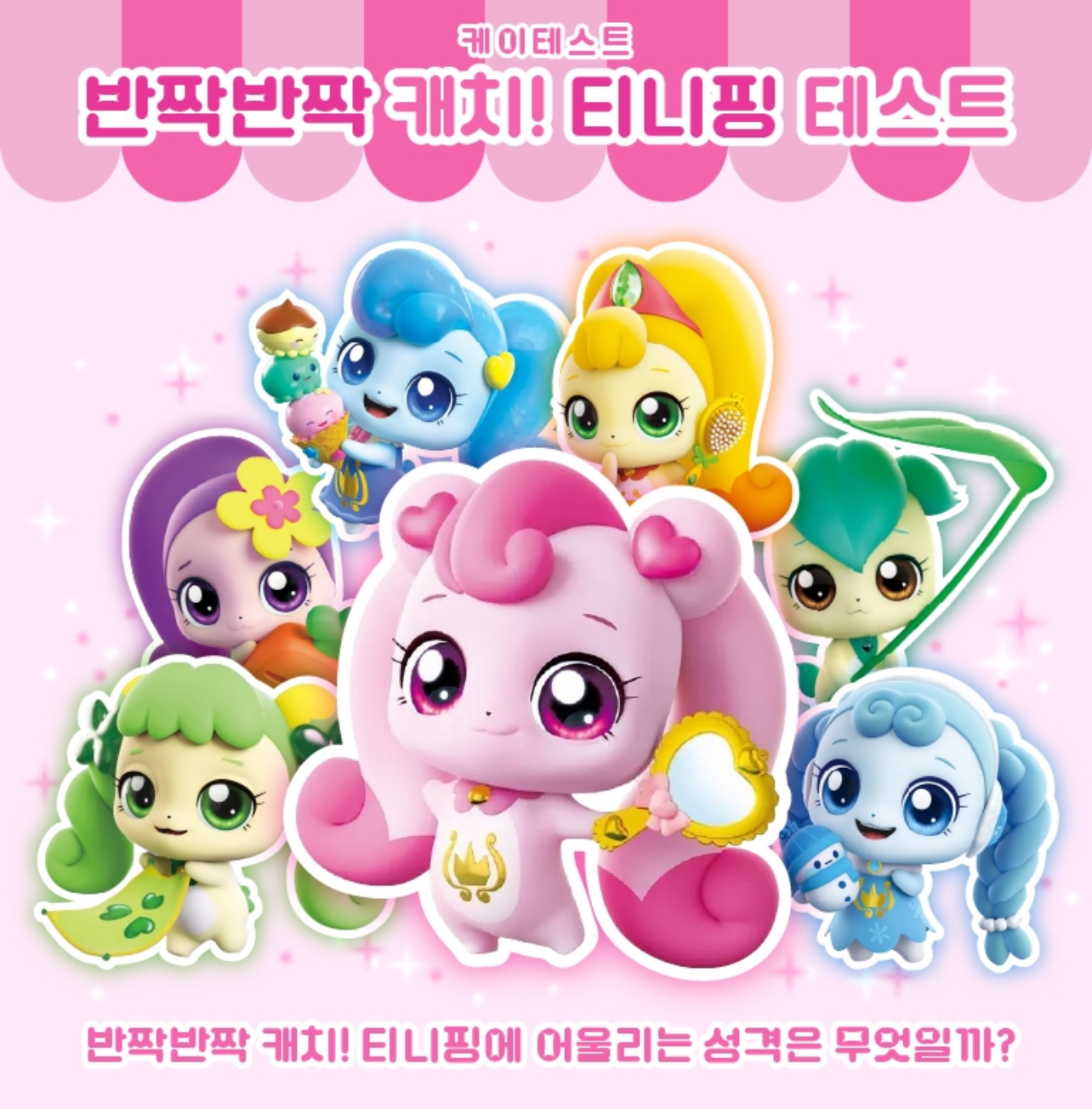 반짝반짝 캐치! 티니핑에 어울리는 성격은 무엇일지 알아보는 케이테스트에서 나온 ‘반짱반짝 캐치! 티니핑 테스트’를 소개해 드리겠습니다.