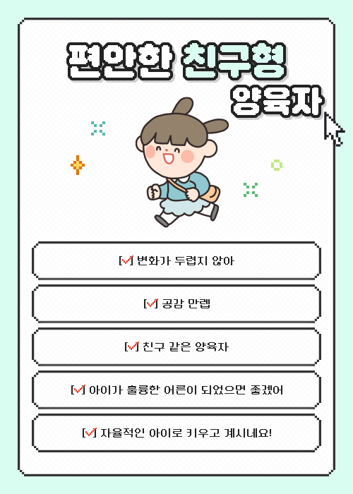 편안한 친구형 양육자가 나왔습니다.