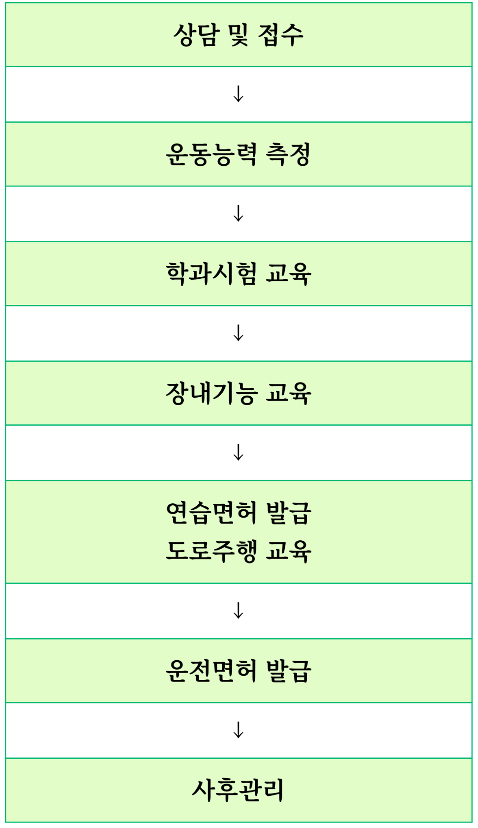 장애인 운전 지원센터는 면허 취득 상담부터 장애 유형에 적합한 차량 개조에 대해 안내하며 운전능력 평가, 학과교육, 기능교육, 도로주행 교육을 무료로 실시하고 있는데 또한 장애인 용 특수 제작 차량을 갖추어 교육 및 응시 편의를 더하고 전문 교육 강사를 배치해 운전면허 취득을 위한 전 과정 서비스를 제공하고 있습니다.