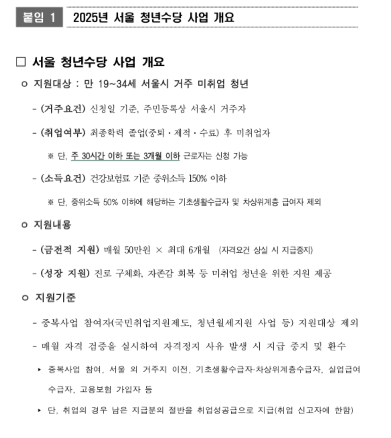 이번 추가 모집을 통해 선정된 참여자는 2025년 7월부터 12월까지 최대 6개월간 매월 50만 원의 청년수당을 받고, 진로 설정과 취업 역량 강화에 도움이 되는 ‘성장지원 프로그램’에도 참여할 수 있습니다.
