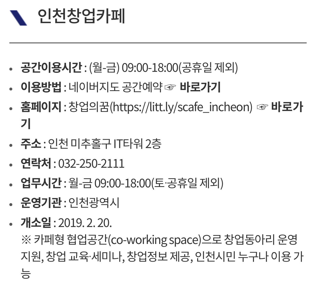 인천 창업카페 이용방법 주소 위치 안내