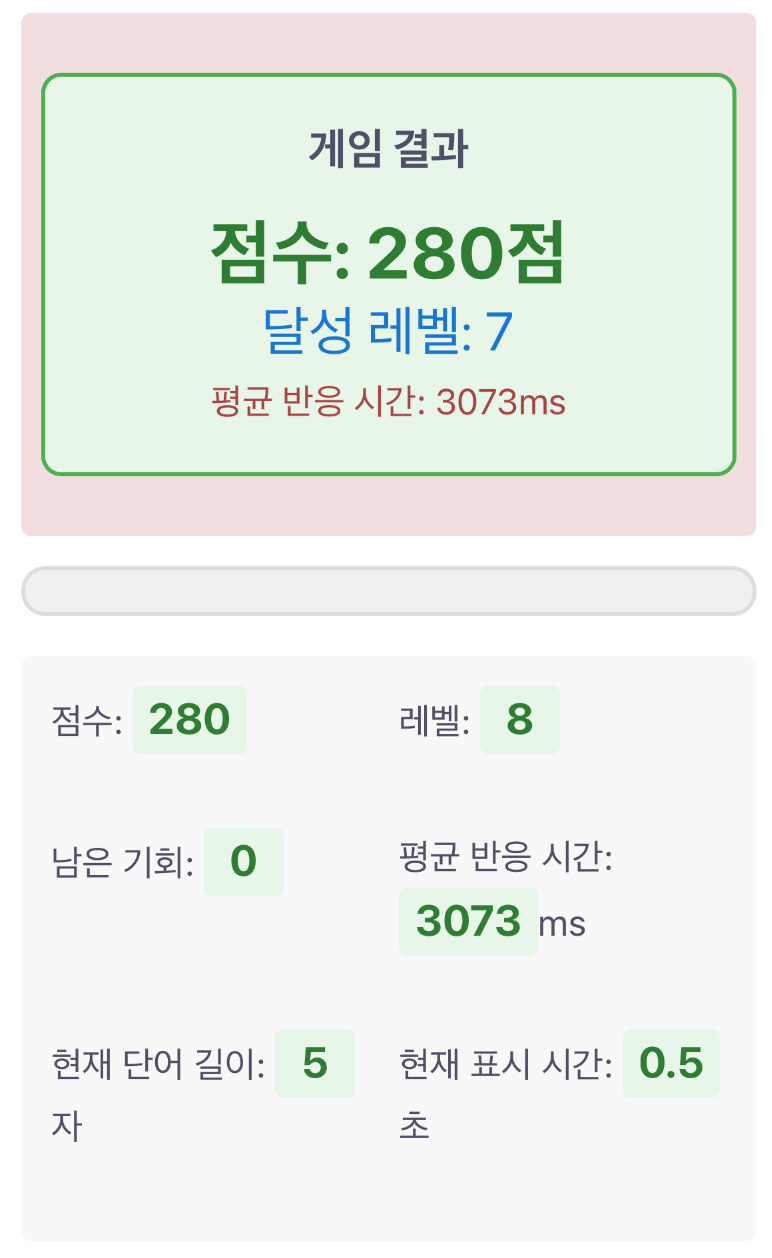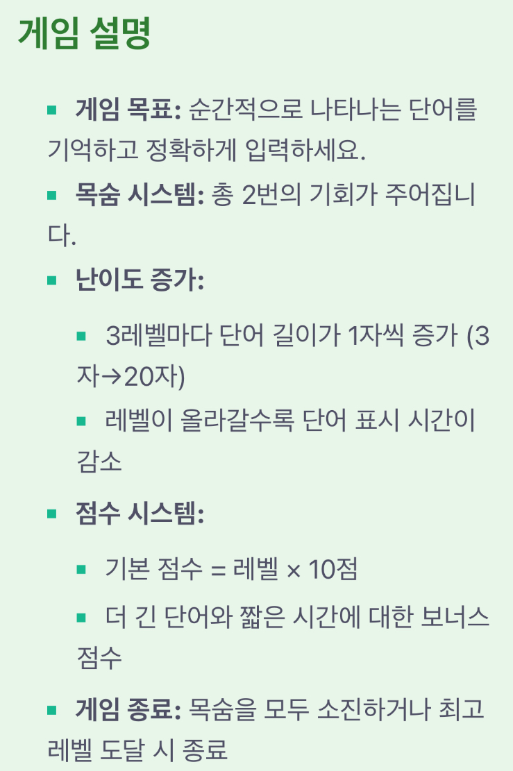 • 레벨이 올라갈수록 단어 표시 시간이 감소
