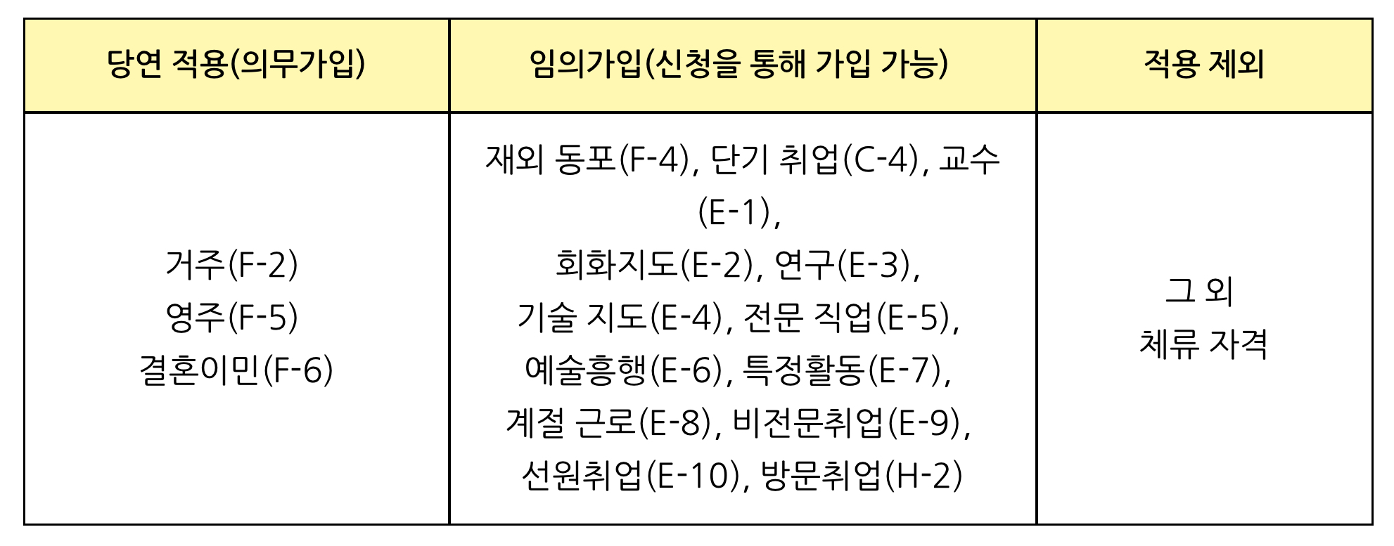 ※ 일부 체류자격 외국인의 경우 임의가입 신청 가능