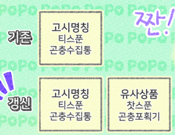 기존에는 고시명칭만 상표법상 인정이 가능한 상품명칭이었지만, 유사상품 명칭 갱신 후에는 유사명칭도 상표법상 인정이 가능합니다.