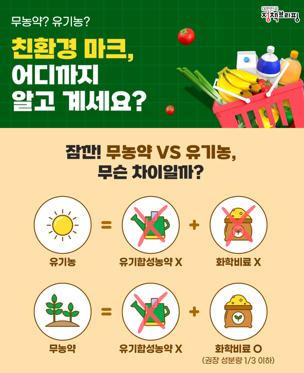 ✅무농약 = 유기합성농약 X + 화학비료 O (권장 성분량 1/3 이하)