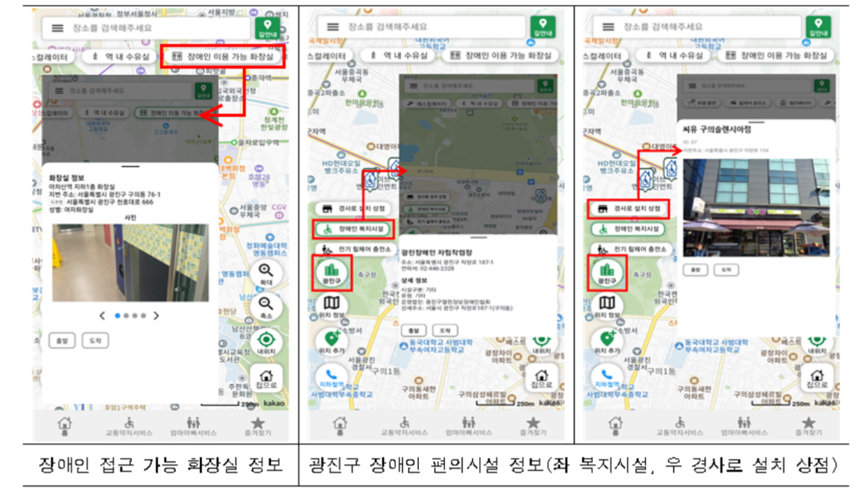 장애인 화장실 등 생활편의시설 정보도 함께 제공한다는데 광진구 관내 지역에 대해선 장애인 복지시설 위치, 경사로 설치 상점 등 실생활에서 활용 가능한 정보를 시범제공한다고 합니다.