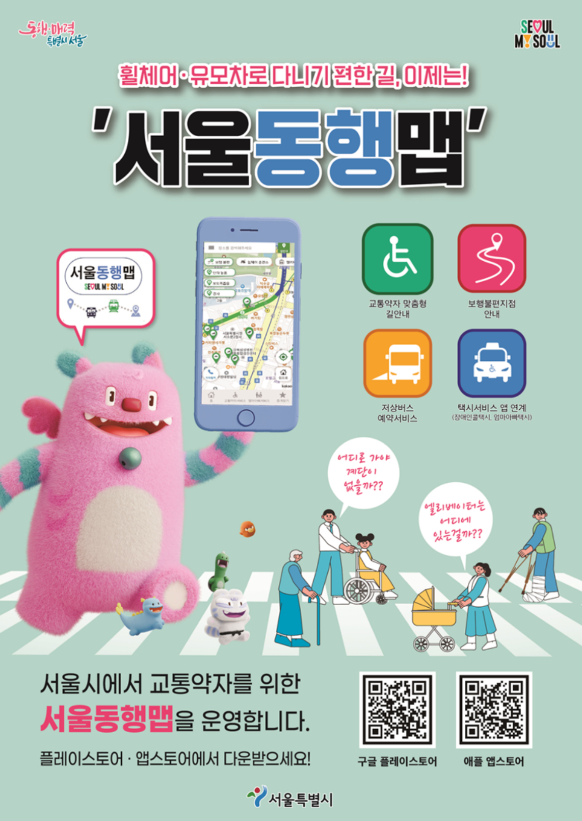 서울시정 철학인 ‘약자와의 동행’의 가치를 시민 생활 속에서 구현한 교통약자 맞춤형 앱입니다.