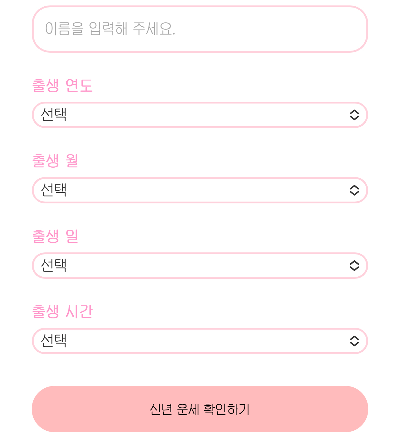 이렇게 5개를 입력하시고 ‘신년 운세 확인하기’를 눌러주시면 됩니다.