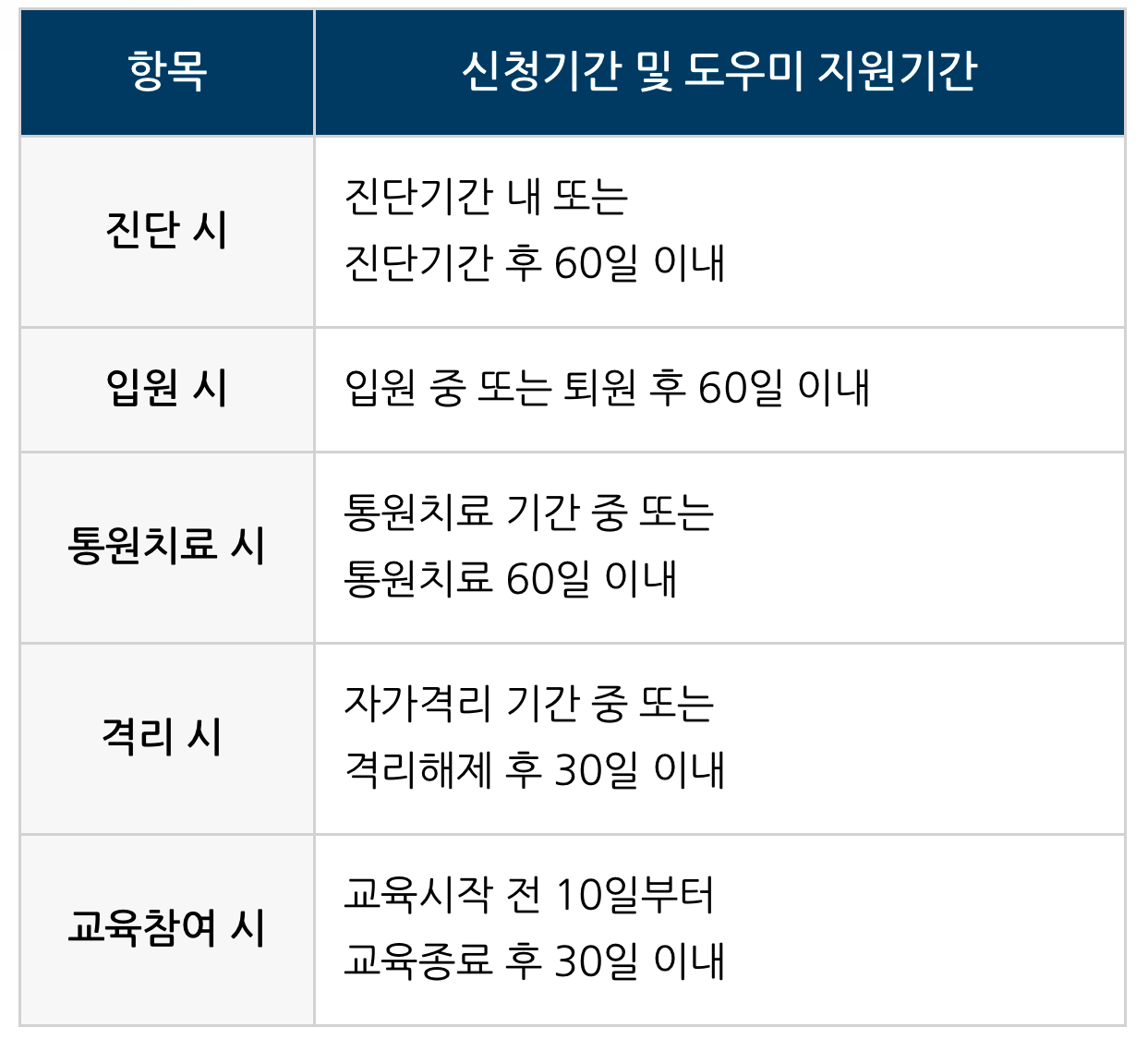 • 입원 시 : 입원 중 또는 퇴원 후 60일 이내