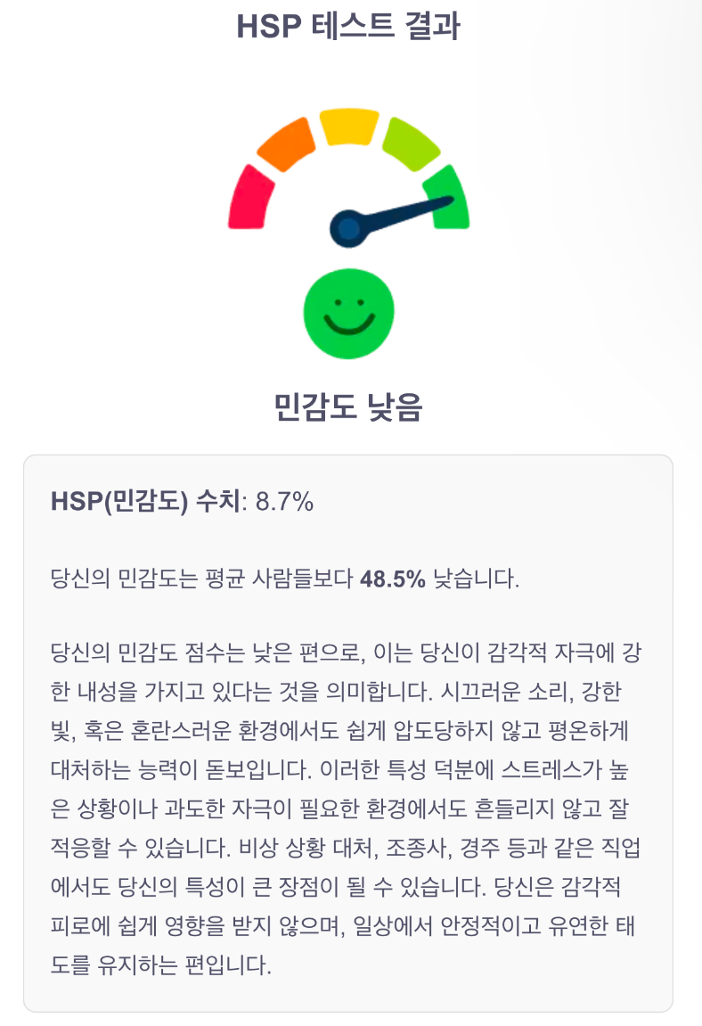 당신의 민감도는 평균 사람들보다 48.5% 낮습니다.