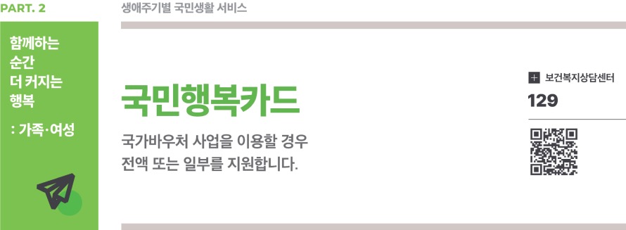 국가바우처 사업을 이용할 경우 전액 또는 일부를 지원하는 국민행복카드에 대해서 소개드리겠습니다.