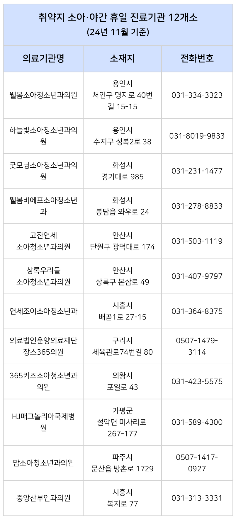 [경기도 취약지 소아 야간·휴일 진료기관 운영]