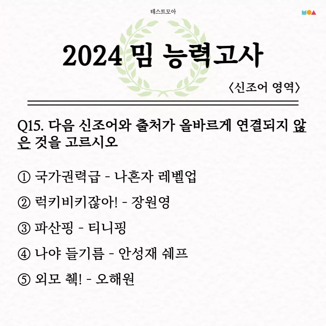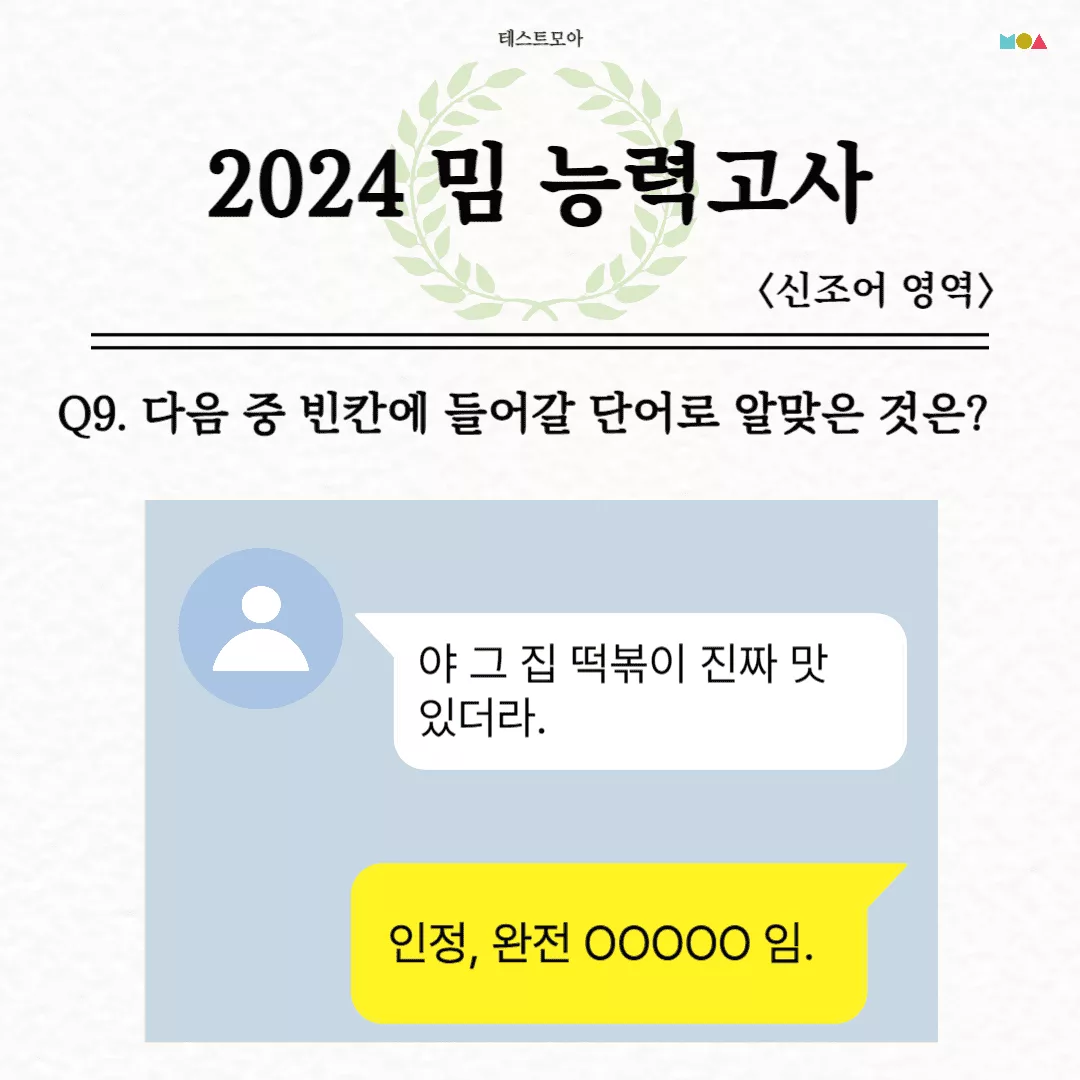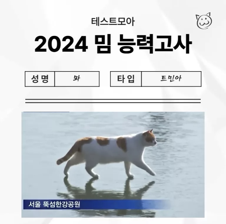 당신은 2024년 밈에 대해서 얼마나 알고 있는지 알아보는 테스트모아에서 나온 ‘2024 밈 능력고사’를 소개드리겠습니다.