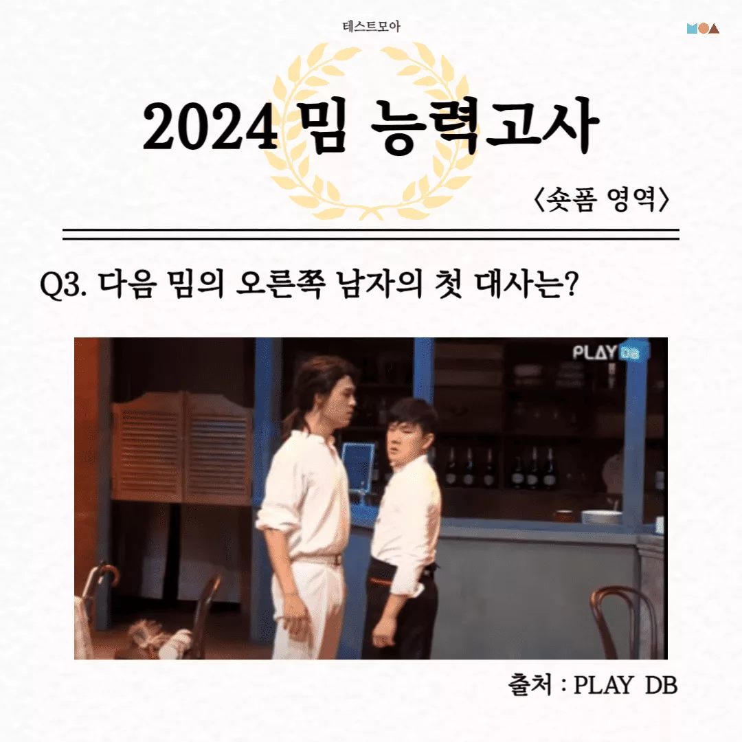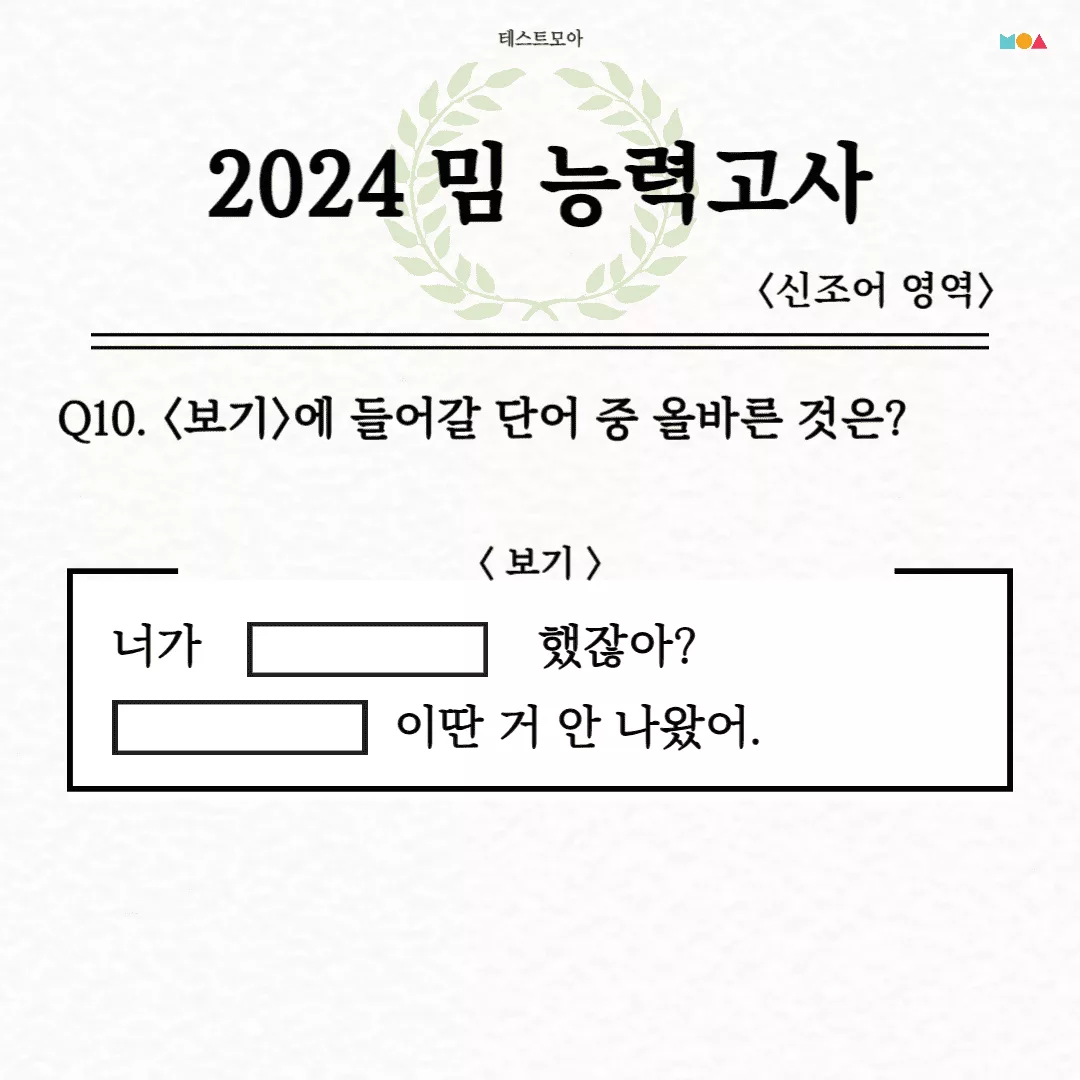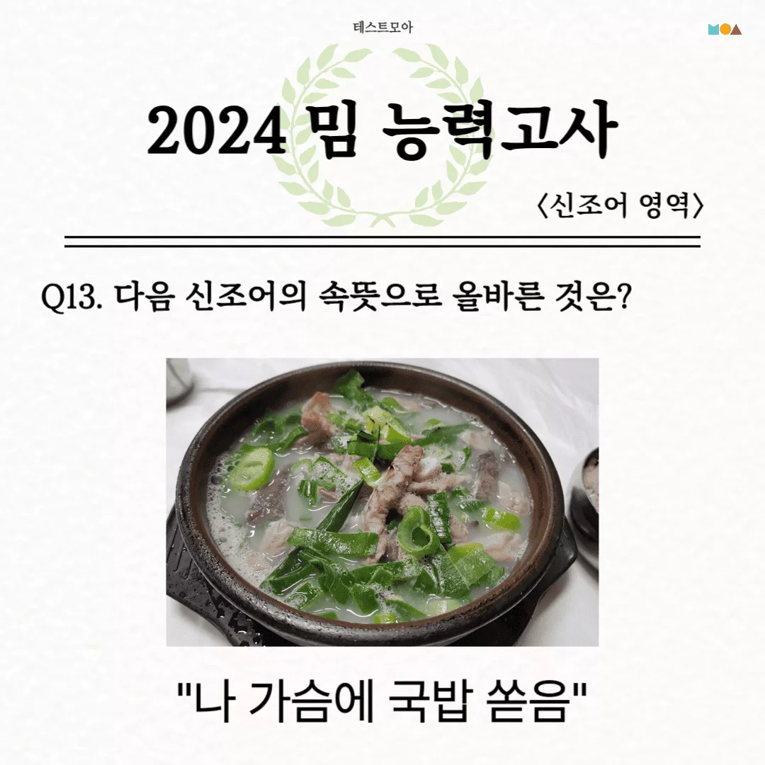당신은 2024년 밈에 대해서 얼마나 알고 있는지 알아보는 테스트모아에서 나온 ‘2024 밈 능력고사’를 소개드리겠습니다.