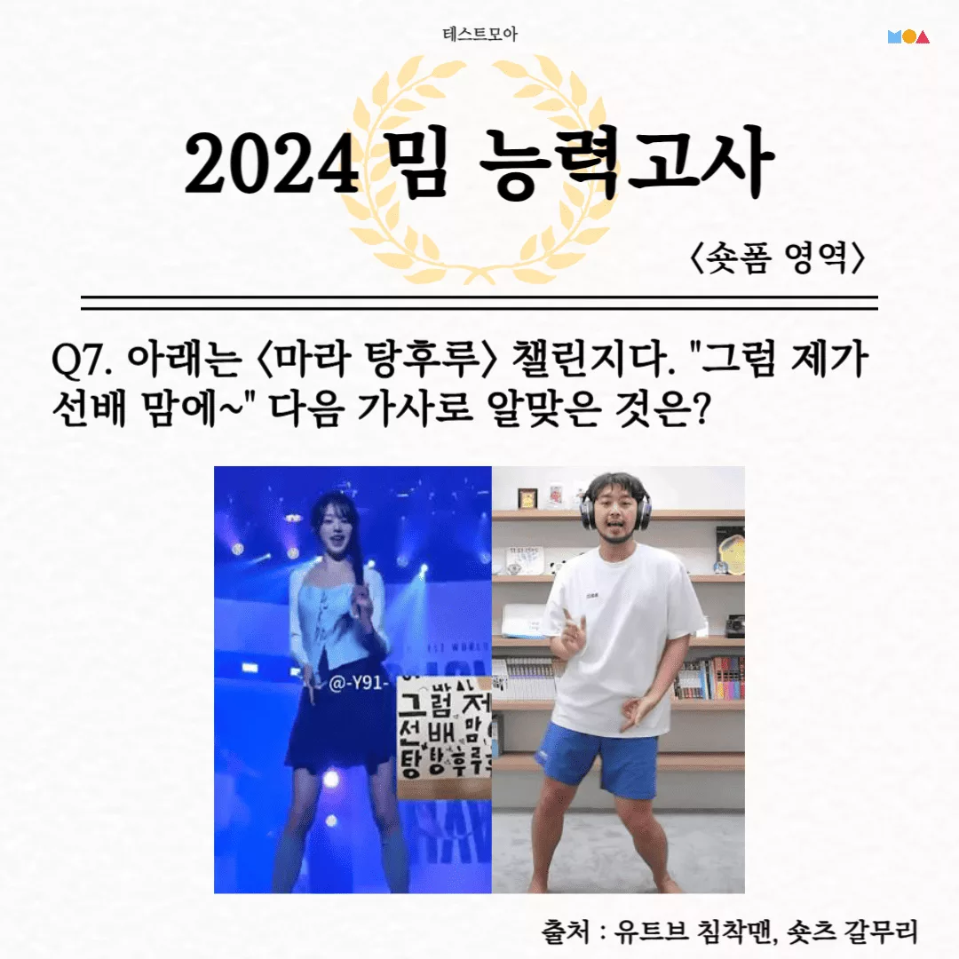 Q7. 아래는 <마라 탕후루> 챌린지다. "그럼 제가 선배 맘에~" 다음 가사로 알맞은 것은?
