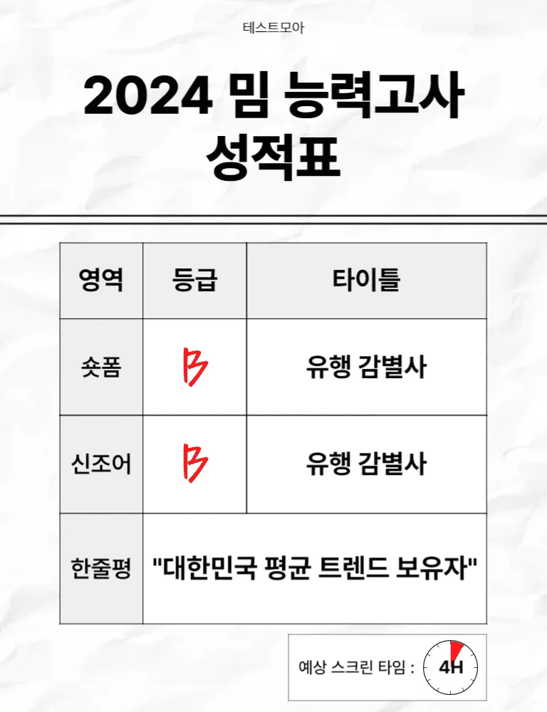 한줄평 "대한민국 평균 트렌드 보유자"