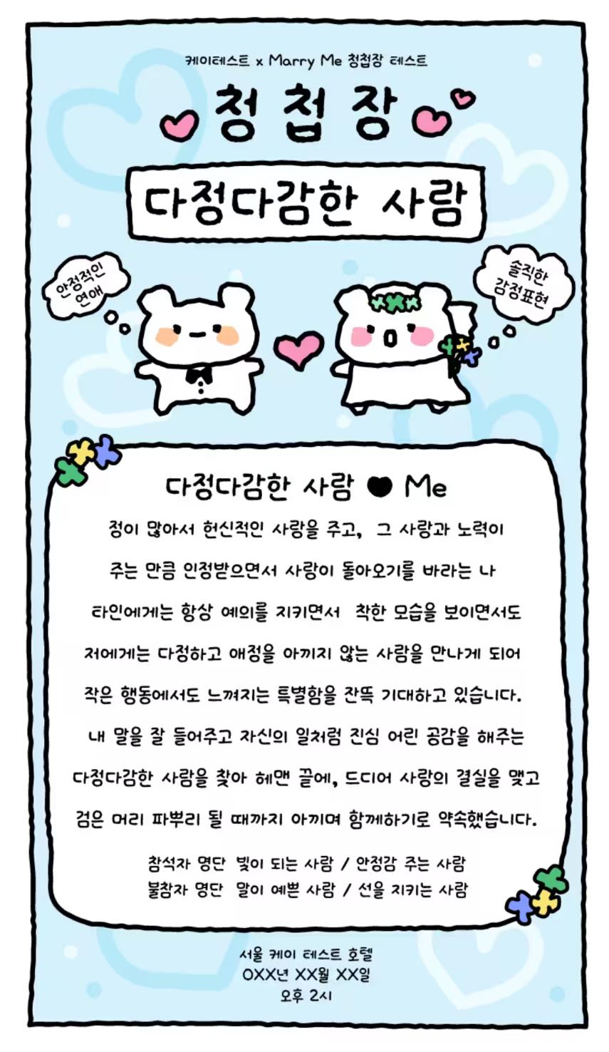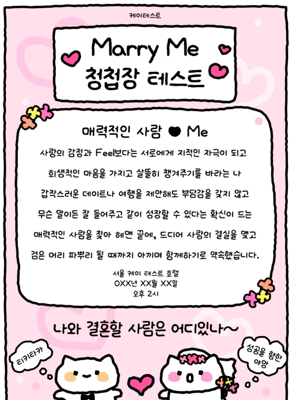 케이테스트에서 나온 ‘Marry Me 청첩장 테스트’를 지금 바로 소개드리겠습니다.