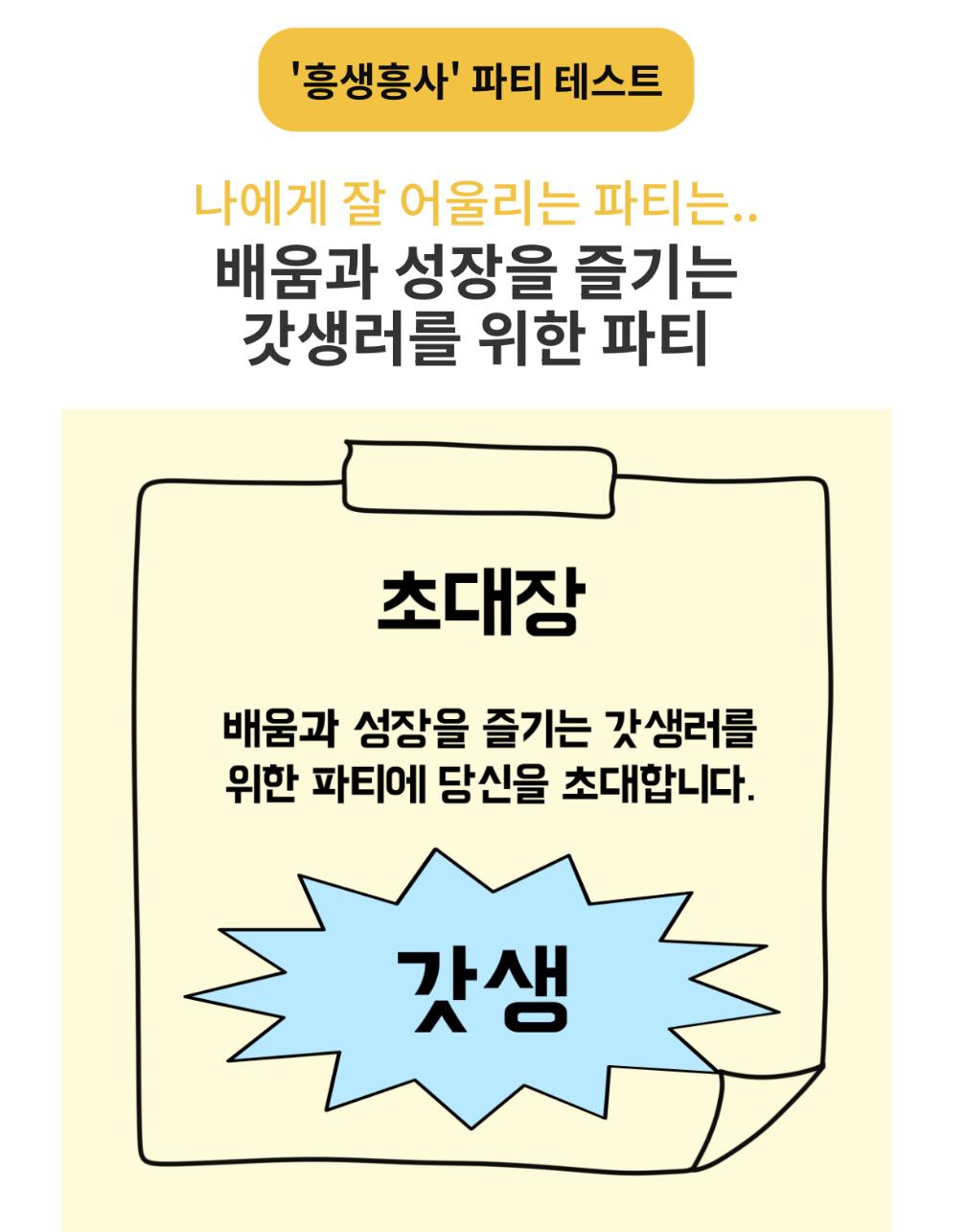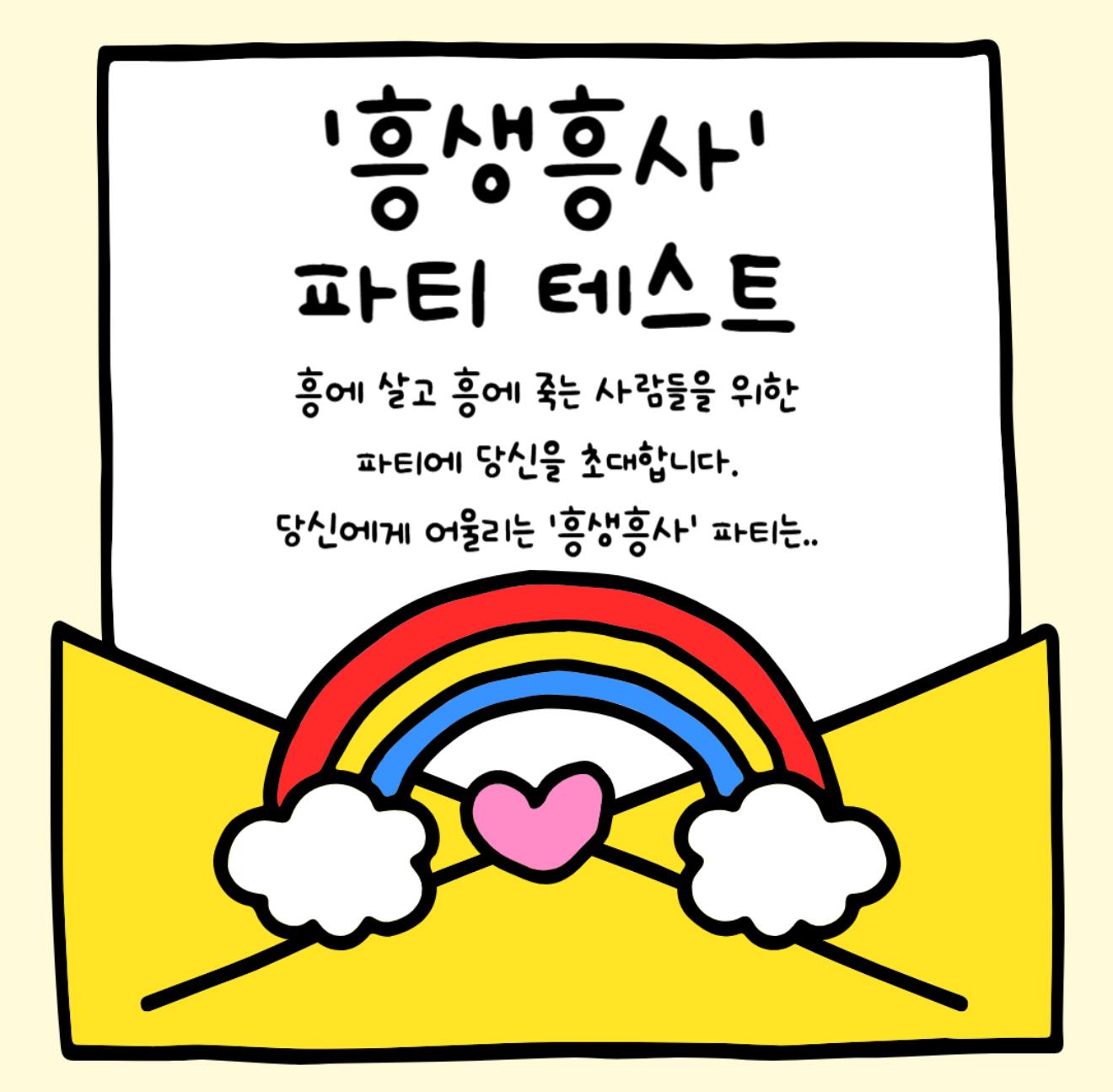 당신에게 어울리는 '흥생흥사' 파티는 무엇인지 알아보는 ‘흥행흥사 파티 테스트’를 소개드리겠습니다.