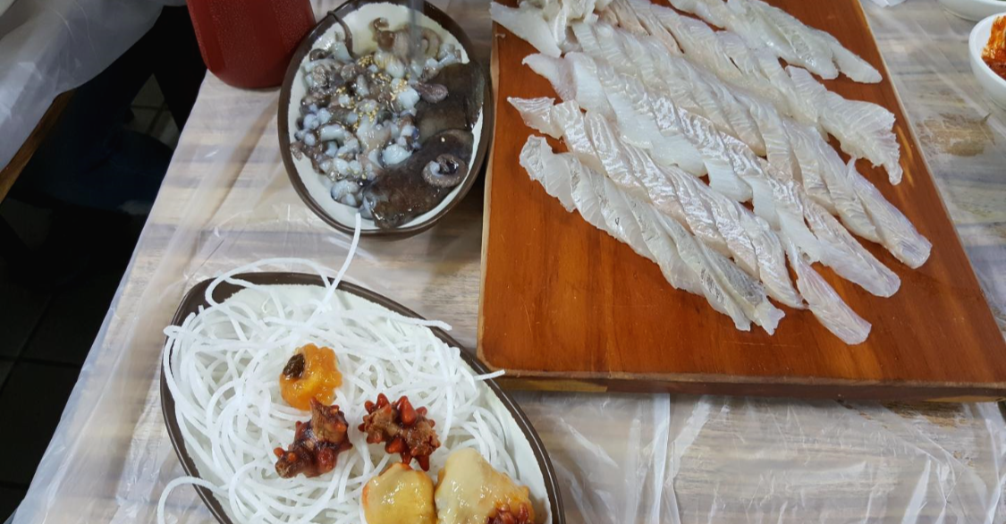 나랑 내친구는 광어+산낙지(해삼서비스)를 총 35,000원에 구매 했다.