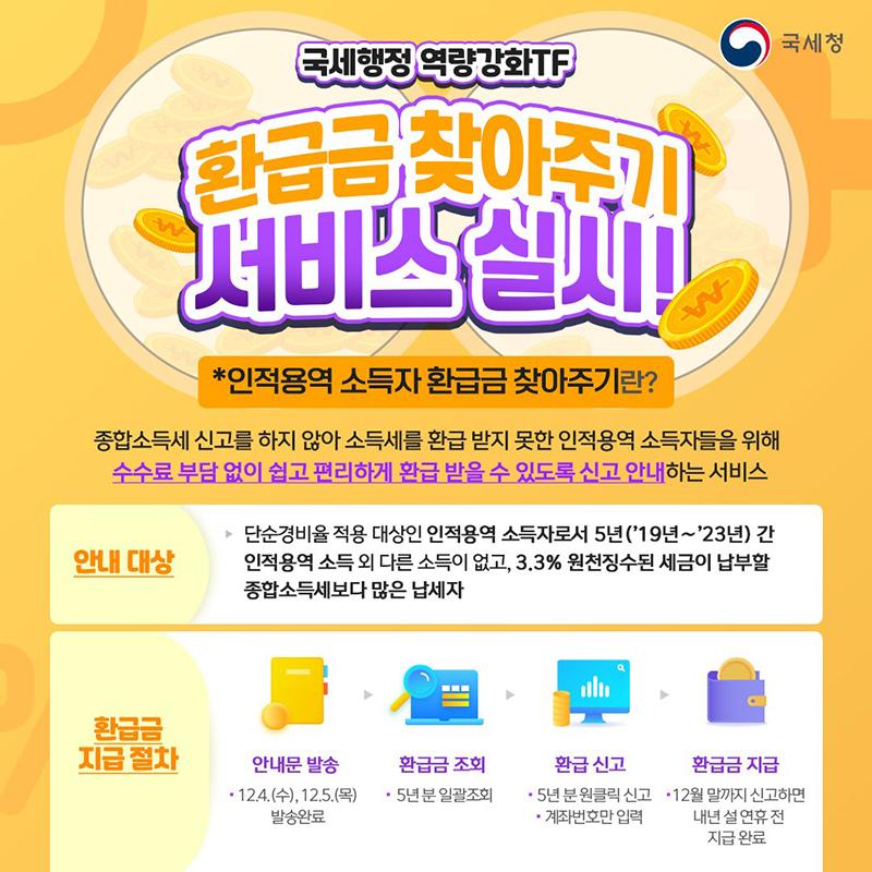 인적용역 소득자 환급금 찾아주기 서비스 안내문을 광고로 오인하여, 환급금을 찾아가지 않은 인적용역 소득자에게 한 번 더 환급 신고 안내하였다고 국세청은 밝혔습니다.