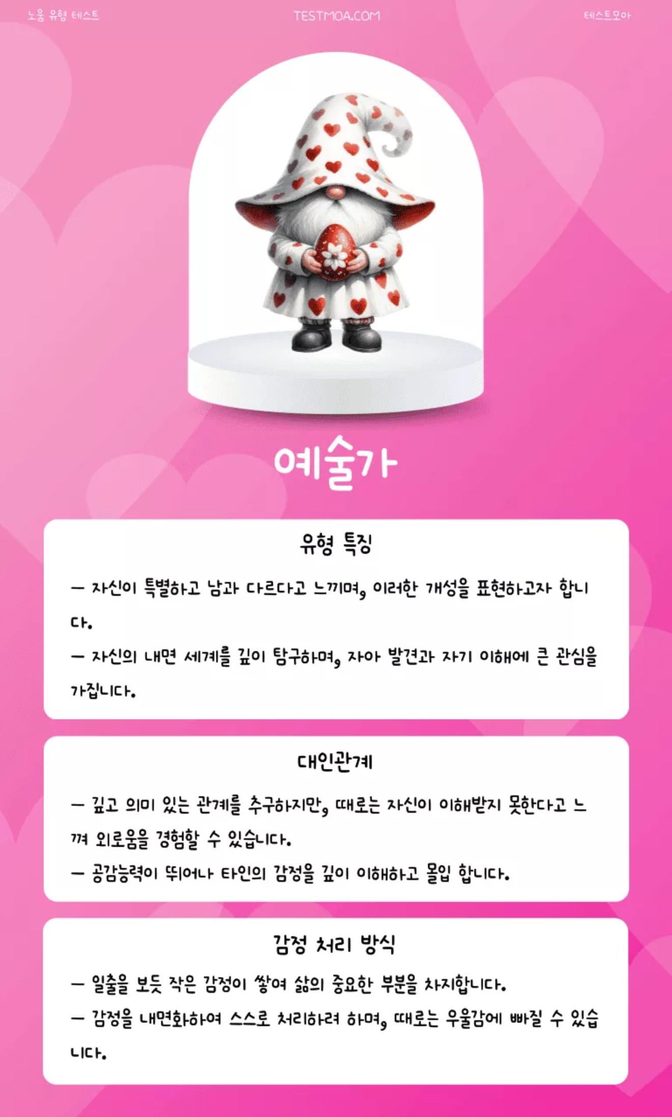 - 감정을 내면화하여 스스로 처리하려 하며, 때로는 우울감에 빠질 수 있습니다.